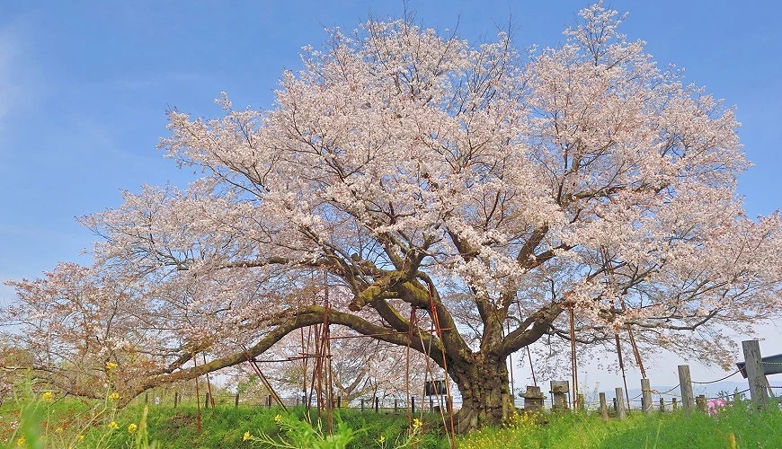 ① 树龄百年、充满生命力的巨大「一本樱」,气势非凡。