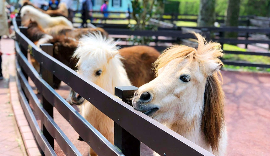 在九州自然动物园还有可爱的小马区,可以近距离与他们接触、合影,或是付费购买胡萝卜喂食,新奇又有趣,是相当珍贵的回忆呢。