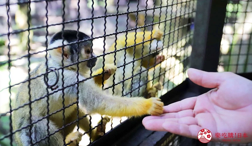 体型娇小可爱,来自南美洲的松鼠猴,圆圆的眼睛看起来非常无辜,付费购买饲料,他们会伸出长长的手臂迅速地拿取你手掌中的饲料哦!