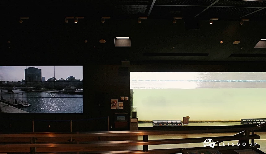 「北九州市立水环境馆」位于小仓市中心的紫川河畔,主打「水与环境共生」,入馆免费,让大家在城市中体验自然与环境之间的连结。馆内分为「学习区」、「交流区」、「休憩区」三大主题,展示内容涵盖紫川的自然生态、城市治水历史与水质保护知识,并透过多媒体互动装置与教育影片,让参观者以轻松方式理解环境议题,还可以实际看到生活在这片水域的动植物。其最大亮点是馆内地下的「河川观察窗」(宽约7.2公尺、高约2.3公尺),能从侧面观察紫川水下世界,亲眼看到鱼群悠游的样貌,如果小仓城逛累了,很适合作为中继站稍作休息。