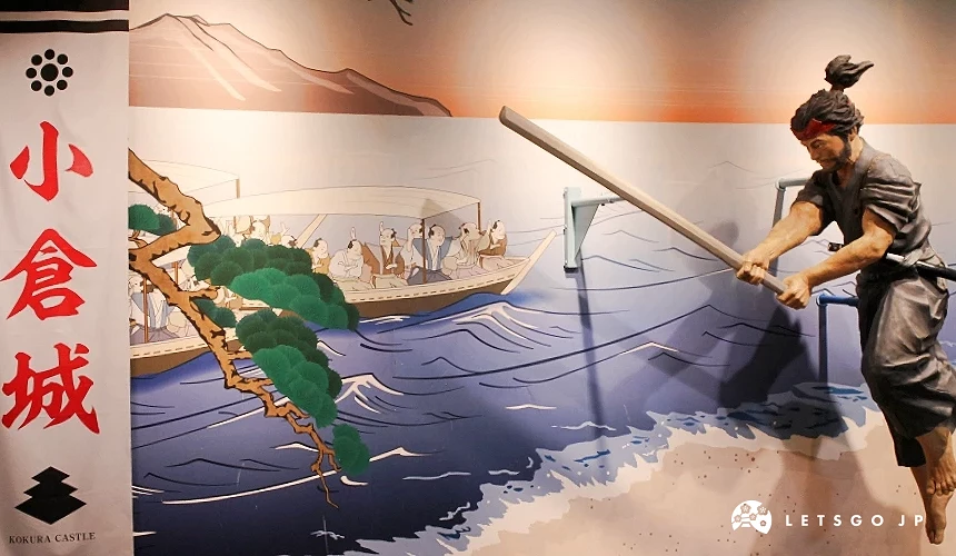 2楼展览以小仓城的关键人物细川忠兴为中心,展出他在关原之战所穿甲胄的模型。3楼则是宫本武藏、佐佐木小次郎这两位剑豪的舞台,在这里可以欣赏他们的爱刀,并在两人「岩流岛决斗」的拍照区尝试接下宫本武藏从天而降的砍击!