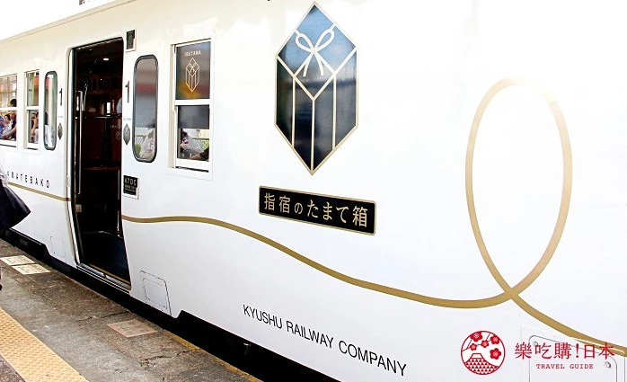 车内设计以「海洋与龙宫」为概念,充满细节巧思,大片车窗映入的是锦江湾闪烁的蓝光与樱岛的壮丽身影。旅途中别忘了品尝列车限定甜点,造型精致的「指宿玉手箱甜点」(720日元)与「指宿玉手箱布丁」(430日元),不仅美味,拍照也十分好看!