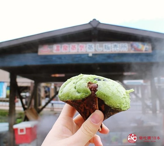 雾岛温泉市场是个小广场,广场中央设有足汤,采取自助式服务,只要投入100日元就可以享受足汤并用旁边提供的毛巾擦干。最让人觉得可爱的是,你还能跟雾岛的温泉大使「小鸭队长」(アヒル队长)一起泡足汤!来到温泉乡不能错过的温泉蒸气美食,在雾岛温泉市场也吃得到。温泉蒸气美食包括温泉蛋、鹿儿岛的地瓜,还有雾岛温泉当地限定的温泉馒头!这里的温泉馒头是艾草做成的发糕,内馅是红豆泥,口味充满乡土情怀。