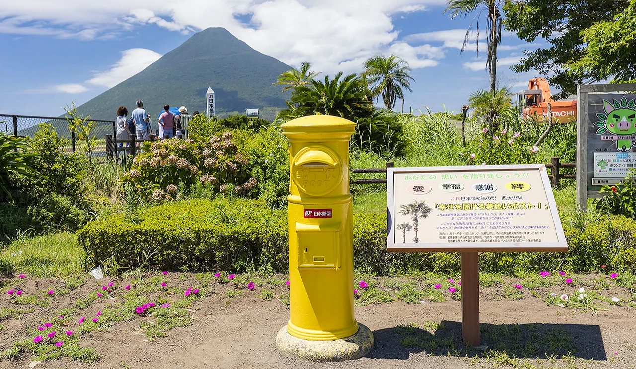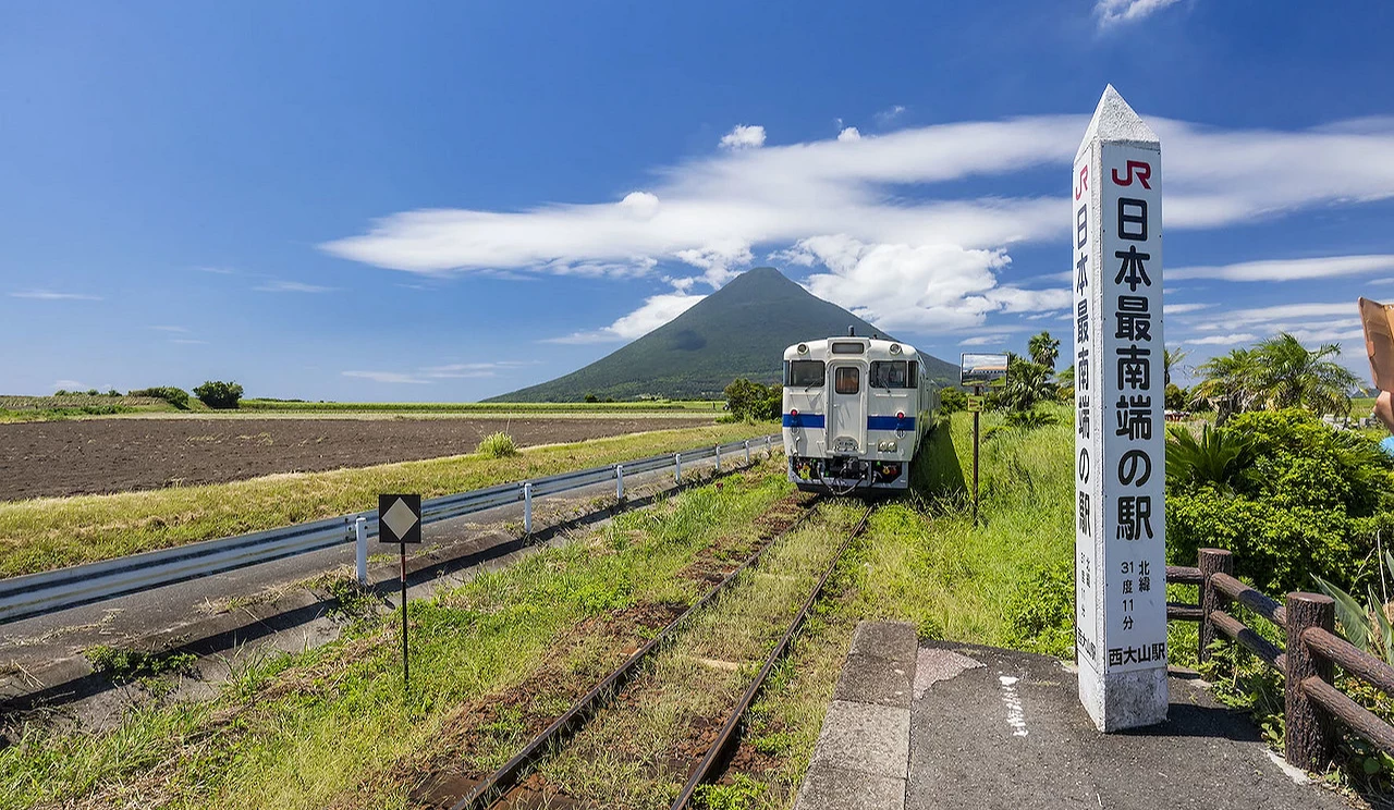 指宿还有一个值得拍照打卡的地标,就是 JR 日本最南端的车站「西大山车站」。西大山车站是地方铁道的无人小车站,但因为是 JR 铁道最南边的车站,加上可以清楚看到人称「萨摩富士」的开闻岳,一定要特别来拍照纪念!