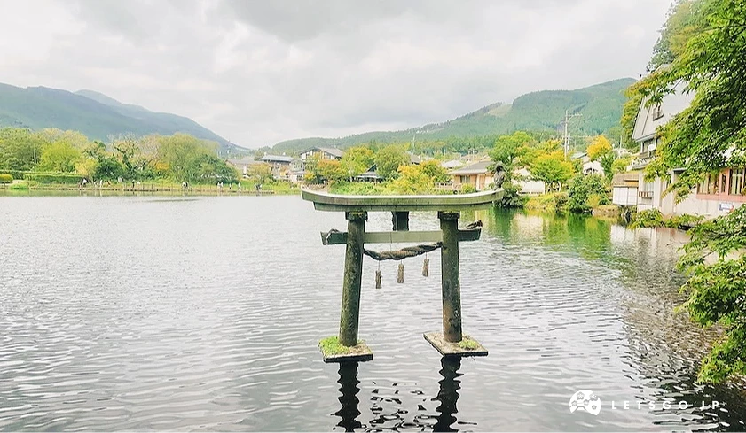 金鳞湖也是由布院具代表性的象征景点之一,湖面在清晨薄雾中闪烁着金色光芒,彷佛覆上一层梦幻的面纱。由于湖底涌出温泉与清水,水温较高,冬季早晨常可见水气氤氲的奇幻景象。湖畔设有散步步道,沿途可欣赏到由布岳的倒影与四季变换的自然风光。周围还有咖啡馆与小旅馆,可边品茶边眺望湖景,是旅人感受由布院悠闲气息与浪漫氛围的最佳地点。