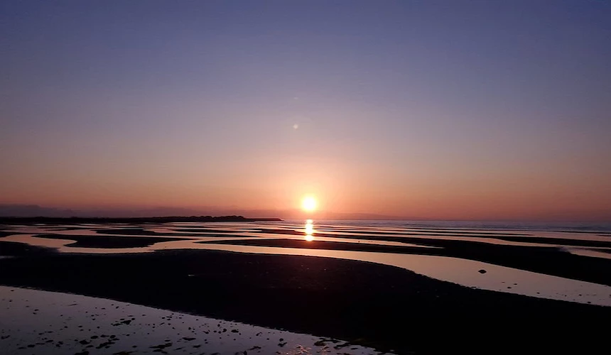 真玉海岸是日本着名夕阳景点,是大分县唯一能看见夕阳落入水平线的海岸,并被选为「日本夕阳百选」。在退潮时,广阔的干泻上会出现如条纹般的缟状纹理,夕阳映照其上,光影交织成梦幻景象。海岸已被登录为国家登记记念物,展现其独特地貌与自然价值。 海边还设有「夕阳露台」(ゆうひテラス),可以在观景平台上悠闲欣赏夕阳,也有咖啡厅提供当地手打荞麦与甜点。