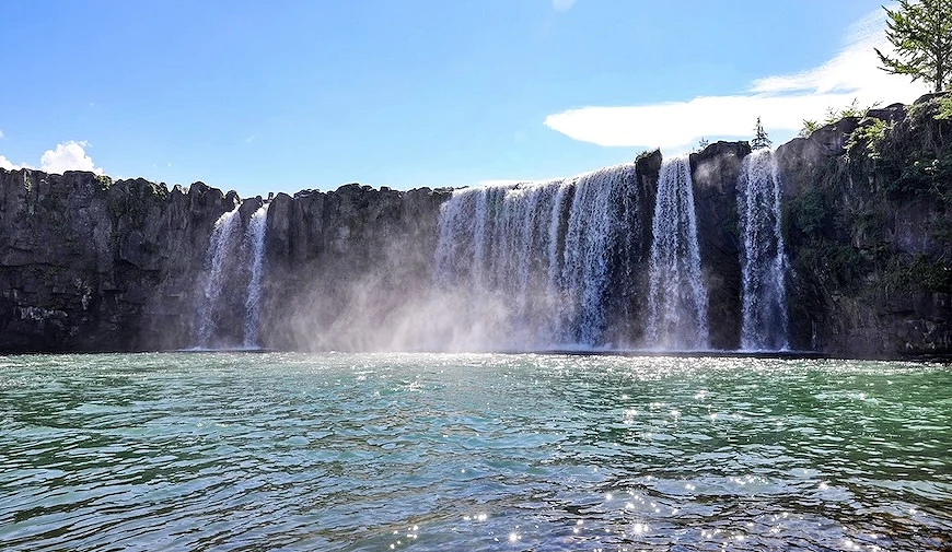 原尻瀑布被誉为「日本版尼加拉瀑布」,宽约120公尺、高约20公尺,由约 9 万年前阿苏山大喷火的火山碎屑流冷却凝固所形成的柱状节理地形构成,水流从宽阔岩盘倾泻而下,气势雄伟。瀑布旁设有吊桥「滝见桥」,游客可以从桥上正面俯瞰整片瀑布,还能走到瀑布上方与下方,近距离感受水流冲击的震撼。也被选入「日本瀑布百选」与大分县百景。