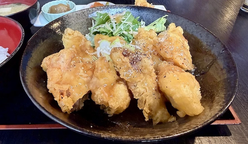 大分县的灵魂美食之一炸鸡天妇罗(とり天),以新鲜鸡肉裹上蓬松面衣炸至金黄,外酥内多汁,带有淡淡甘味。当地习惯沾芥末酱油或柚子酱,清爽不腻,是家庭料理、食堂、便当都会出现的国民级美食。别府与大分市区皆可品尝。